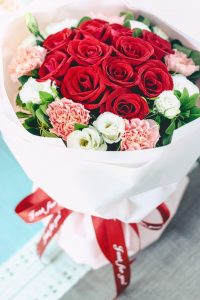 Beautiful Bouquet of flowers and a Frankie Gusti Candle and Typoflora Card.